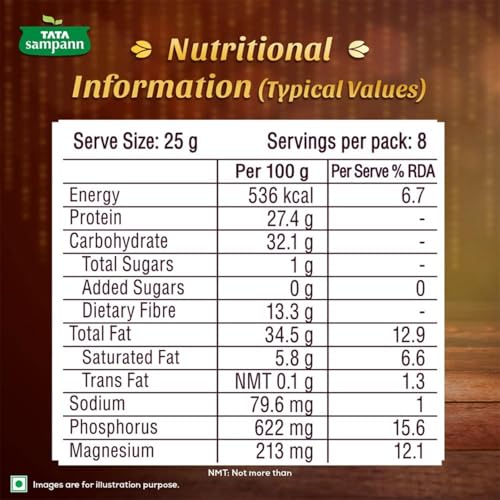 Snack On Crunchy & Wholesome Roasted Seed and Nut Mix! Indulge in the irresistible delight of Tata Sampann Protein 7-in-1 Seed & Nut Mix. Enjoy the delicious wholesome and crunchy snacking options for you. This power-packed roasted nut and seeds mix undergoes 20+ quality parameter checks to ensure you get only the premium quality. Snack on this delicious roasted nut and seeds mix combo that is rich in Protein Dietary Fibre Magnesium and Phosphorus. This roasted nut and seeds mix consists of roasted Pumpkin Watermelon Sunflower Flax Chia Sesame Seeds & Soya Nuts. Enjoy the choicest selection of roasted seeds and nut mix for breakfast mid-day snacking or on-the-go snacking. Elevate your snacking game with Tata Sampann Protein 7-in-1 Seed & Nut Mix today! Storage Instructions: Store in a cool and dry place. Store away from direct heat or sunlight.