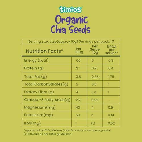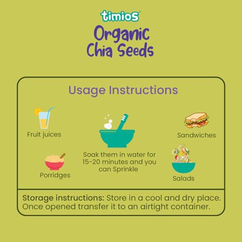 • Timios 100% organic chia seeds can be introduced to children as well as adults as part of a balanced diet. They can be easily added to a variety of dishes to enhance their nutritional value.