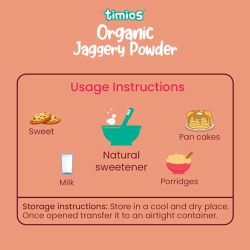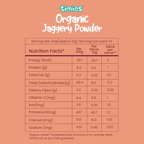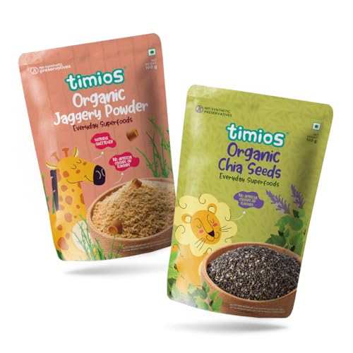 The tiny nutrition-packed superseeds are small in size have mild taste and it's easy to incorporate chia seeds into your diet. The premium quality Timios chia seeds are packed with essential nutrients including vitamins minerals and antioxidants. Chia seeds contain soluble fiber that bring satiety prevents overeating and benefits the overall digestive system. Timios Chia Seeds are processed & produced as per USDA standards and certified by Jaivik Bharat. Experience the goodness of Timios Chia Seeds and embrace a healthier lifestyle. These nutrient-rich seeds are a natural choice for those seeking optimal nutrition balanced well-being and a delicious addition to their daily diet. A true superfood suitable for all ages from children to adults. Timios Jaggery Powder is a superfood sweetener is unrefined and free from any harmful chemicals or preservatives making it a healthy alternative to regular sugar. Timios Everyday Superfoods Jaggery is processed & produced as per NPOP & USDA standards. Jaggery contains more nutrients than refined sugar it is a good source of anti-oxidants iron calcium potassium zinc and selenium. It is a great addition to any kitchen pantry and a must-have for health-conscious individuals who are looking for a natural and wholesome sweetener.