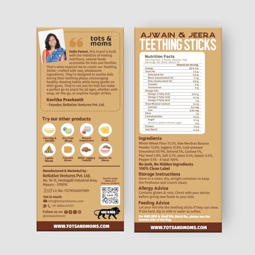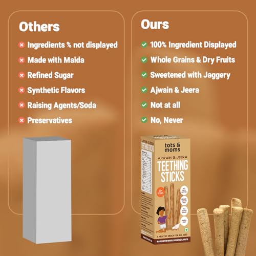 When kids start teething they want to chew on anything to soothe their gums. Many parents unknowingly give plastic teethers or store-bought teething sticks filled with maida white sugar and preservatives—which can be harmful to their tiny tummies. That’s why we created Teething Sticks—firm enough to comfort itchy gums easy to hold and chew and made with wholesome natural ingredients. Not just for kids these are a healthy snacking option for all ages!