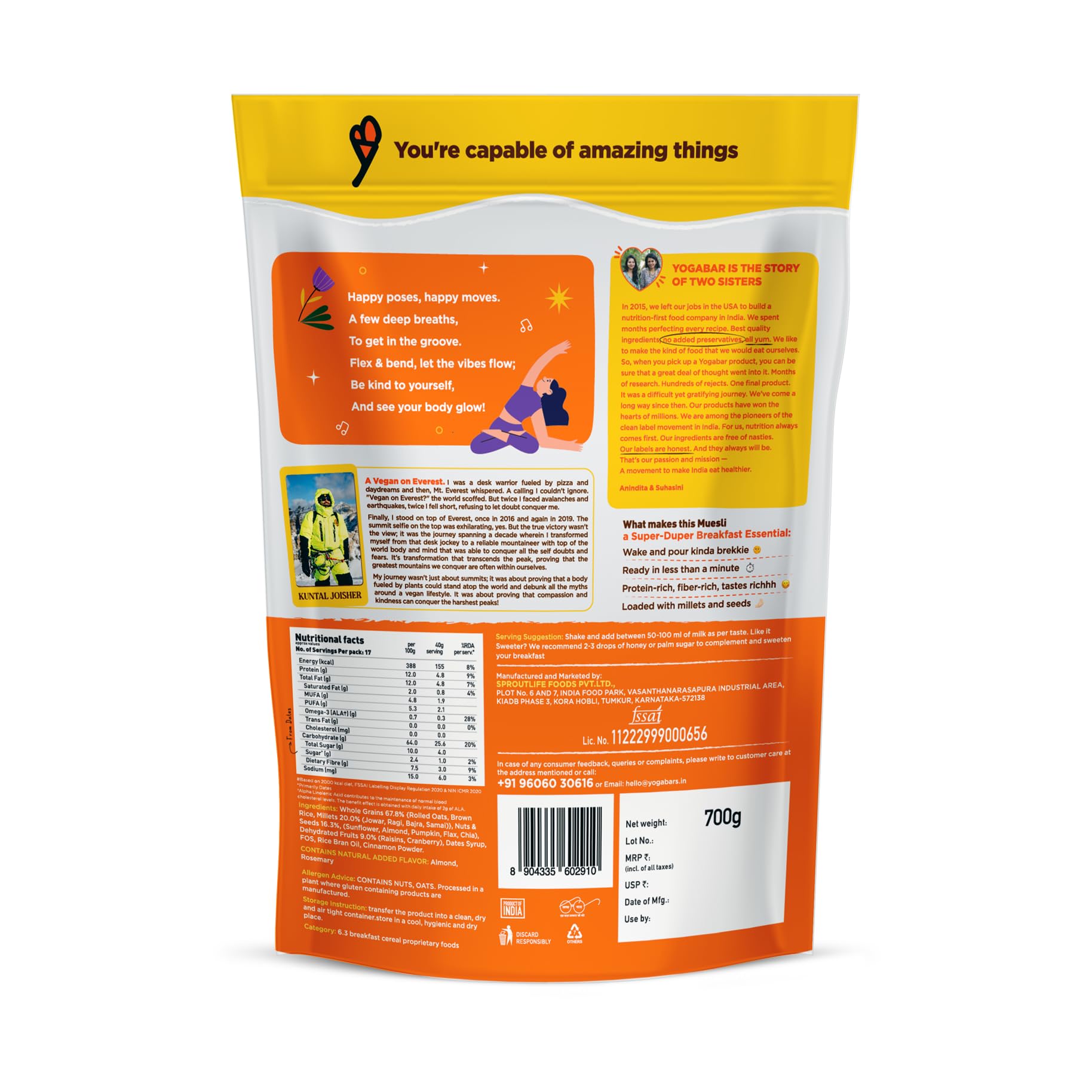 I have tried and tested different brands and flavours of muesli - Kelloggs, Yogabar, Sirimiri, Monsoon Harvest. I have been buying Yogarbar for over 1 year now and from my experience , it is the best. Good combination of fruits and seeds, right level of roasting and great taste.