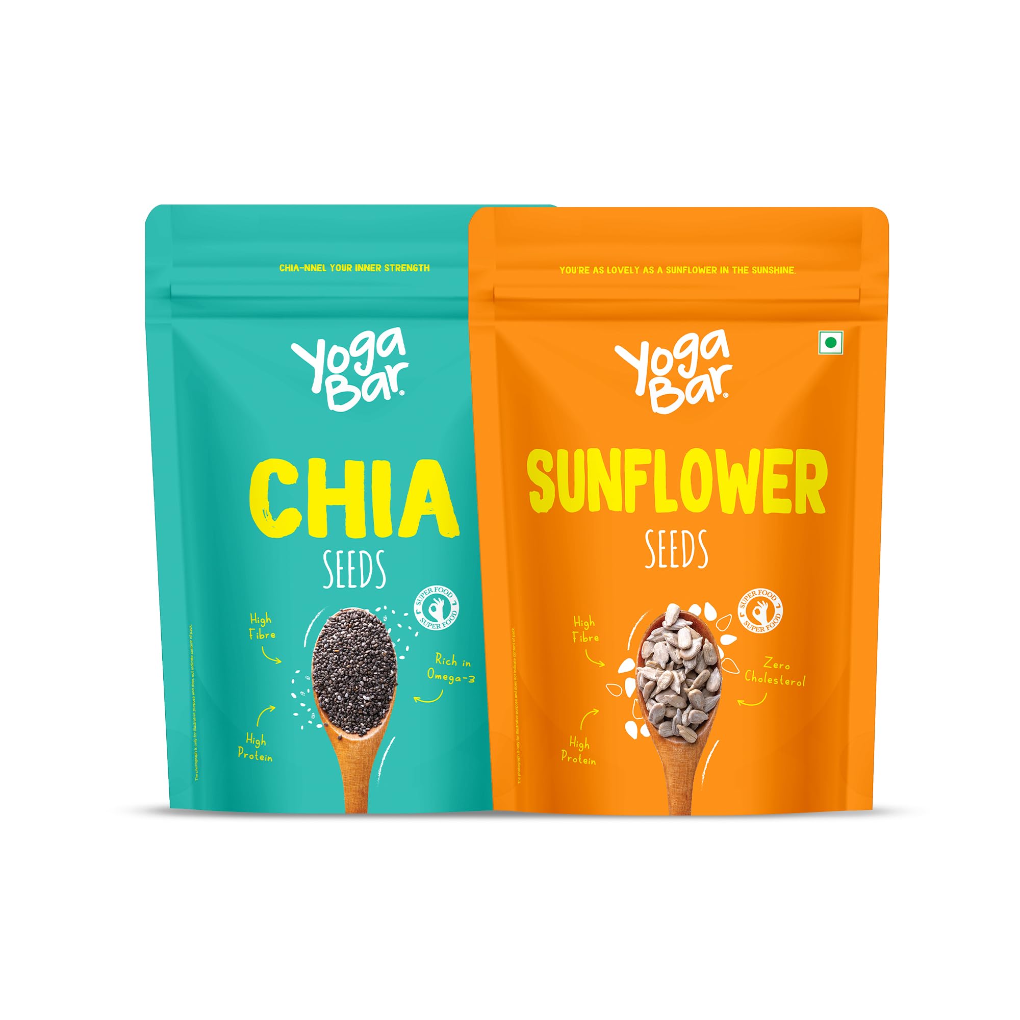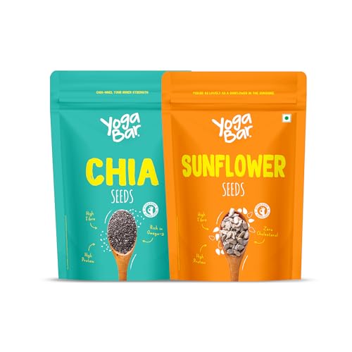 HomeGroceryNutsSeedsYogabar Roasted Chia Seeds + Sunflower Seeds 500g (250g*2, Pack of 2) | Black Calcium, Iron & Zinc - Diet Food Healthy Snacks, Sunflower Seeds for Eating Protein and Fibre