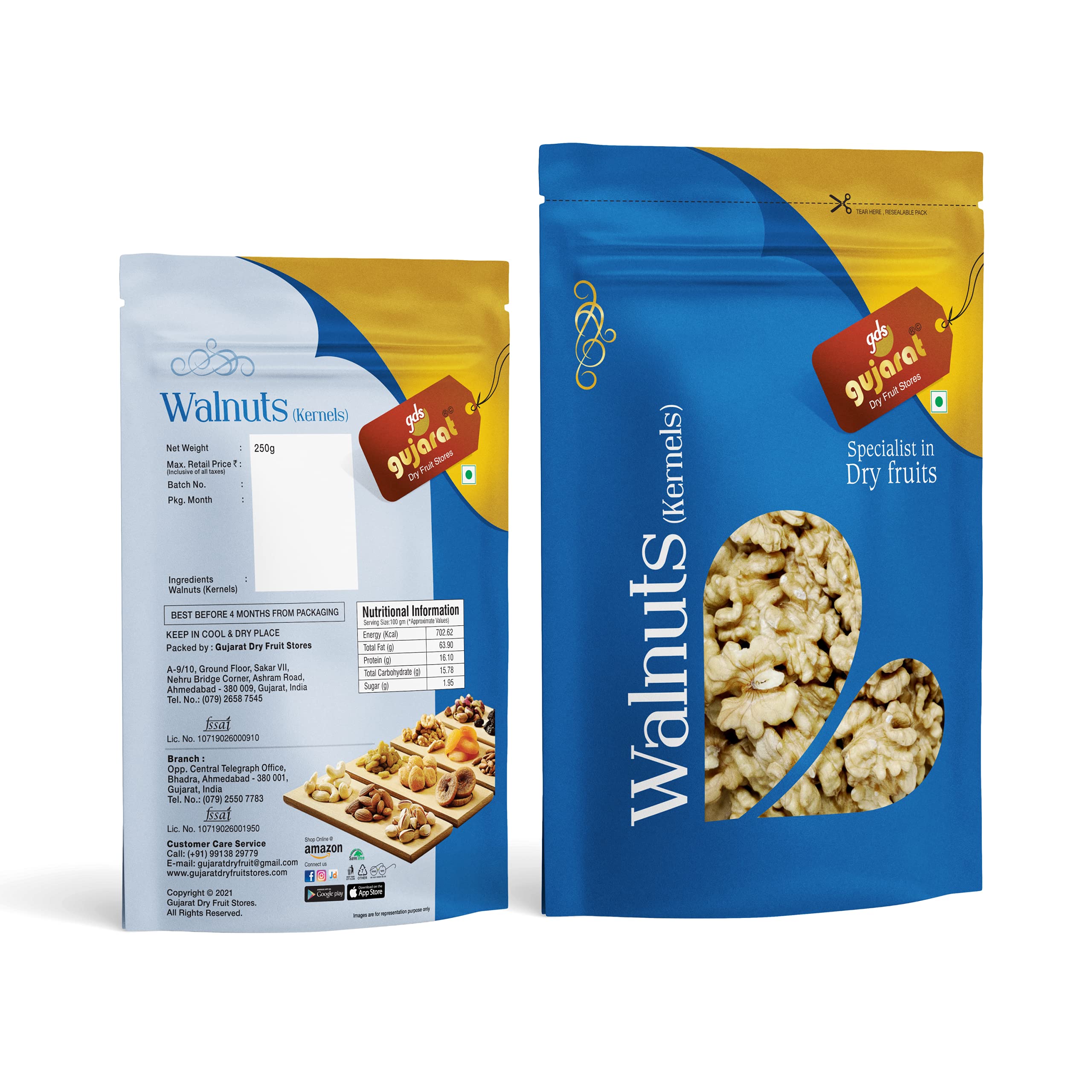 GUJARAT DRY FRUIT STORE GDS Organic Walnut(Akhrot)Giri 1 Kg(250G X 4 Pack)SelectedWalnuts Without ShellHealthy&DelightfulAll NaturalGluten-FreeNo PreservativesNo Additives