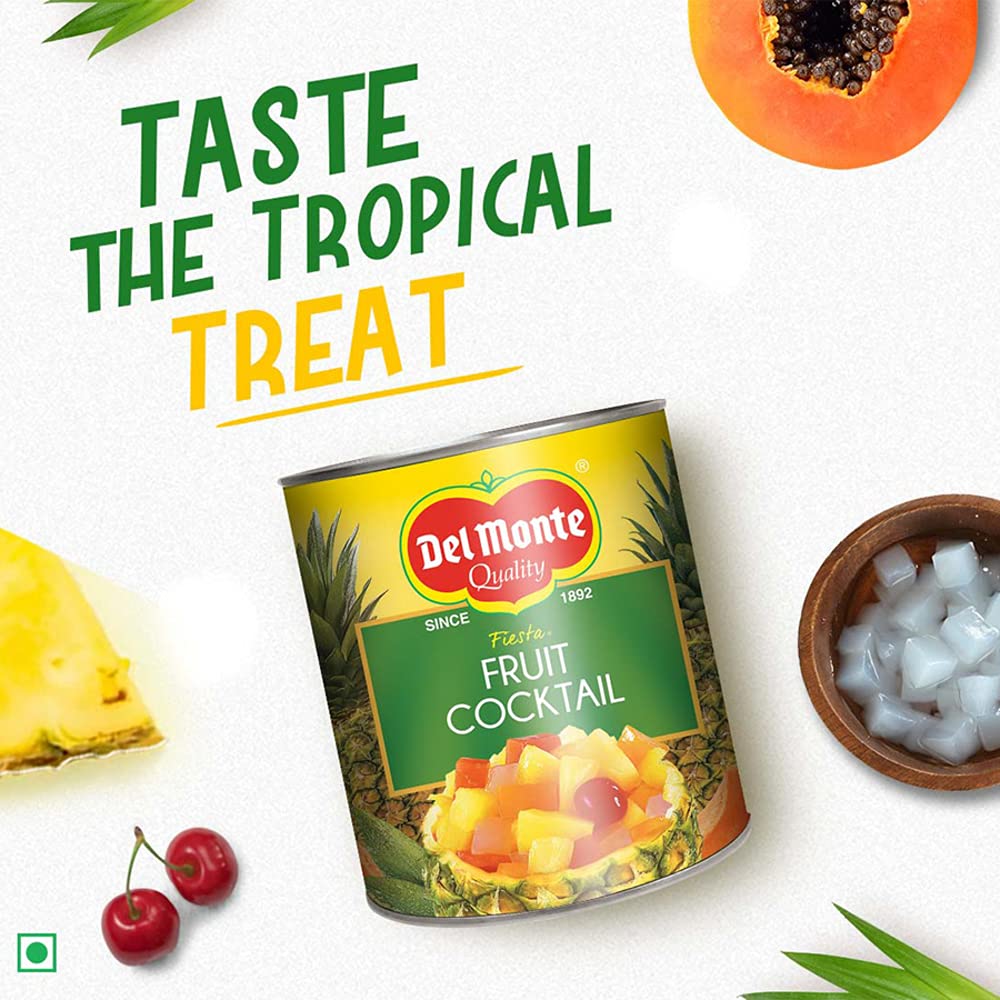 As pioneers in packaged fruits with a heritage that goes back more than a century Del Monte believes in sourcing the tastiest and best quality fruits from around the world for our consumers in India. It is this philosophy that drives us to source the juiciest Pineapple Slices and Tidbits from Philippines; the most succulent Peach Halves imaginable from South Africa and exquisite Prunes and Cranberries from North and South America. Del Monte Fruit Cocktail is a cocktail of premium fruits like Pineapple Papaya Nata De Coco & Halved Cherries.