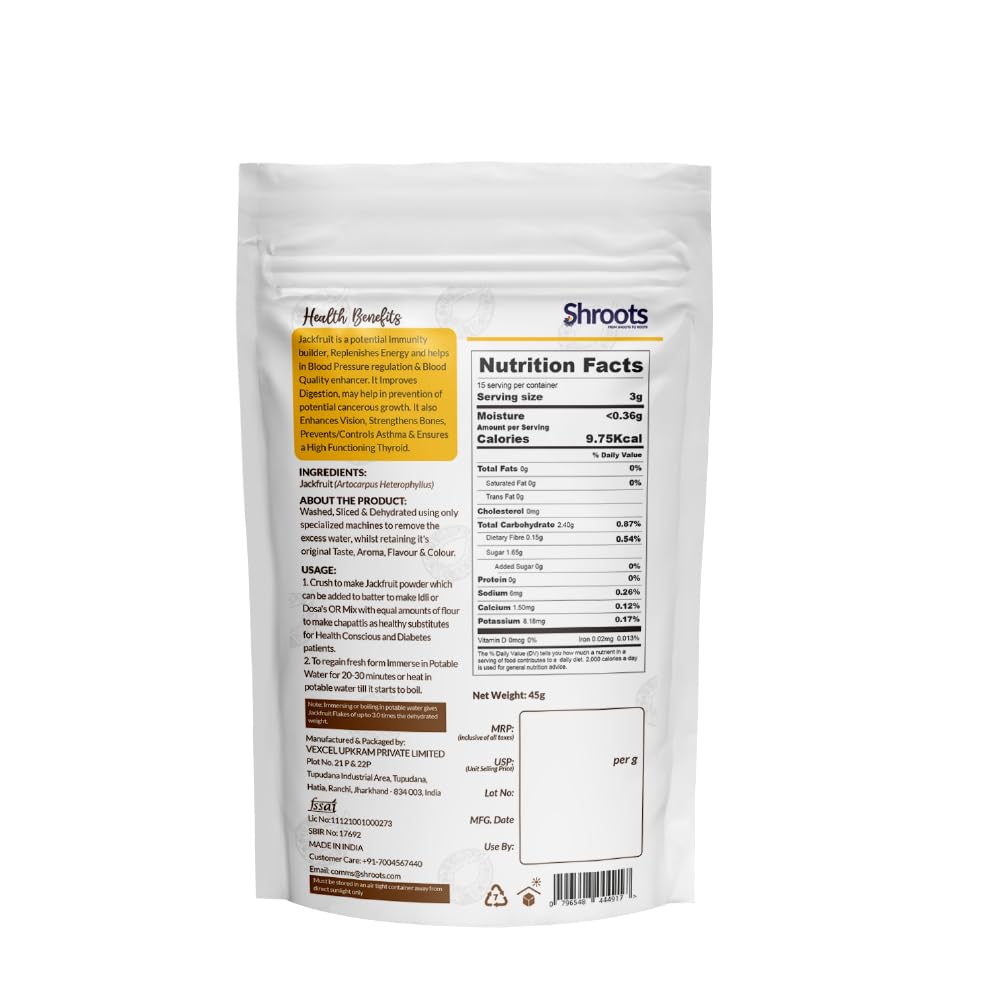 SHROOTS Dehydrated Jackfruit Flakes | Pure Vegetarian & Easy Cooking Essential Machine Dehydrated Foods - 45Gm (1 Count (Pack of 1)