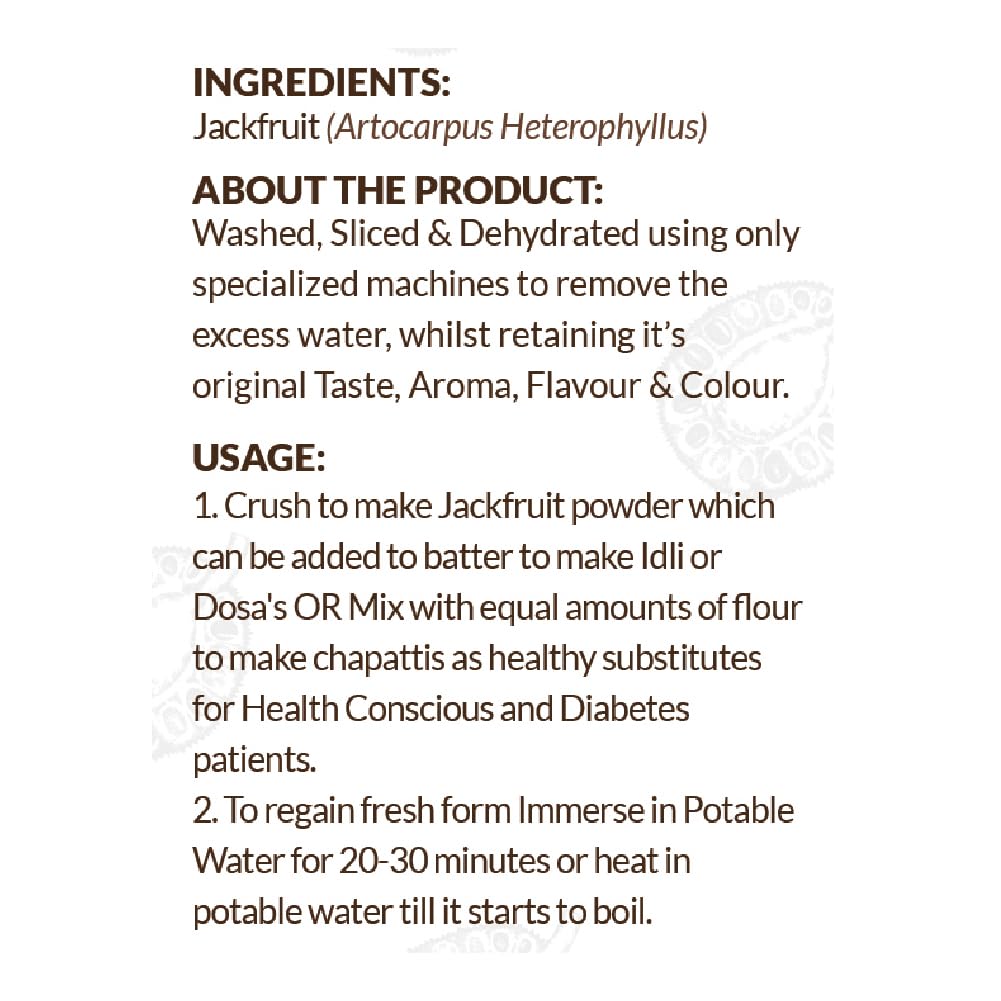 Washed Sliced : Prepared with care the jackfruit is thoroughly washed sliced and then dehydrated ensuring cleanliness and providing a ready-to-use product.