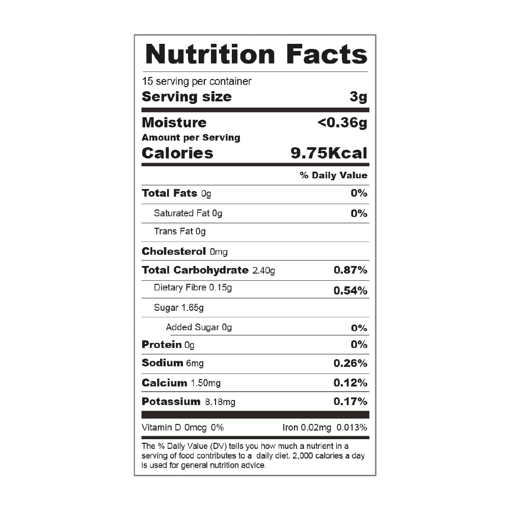 Heavy Metal Absence : Free from heavy metals ensuring a safe and healthy product by avoiding the risks associated with open-air drying methods.