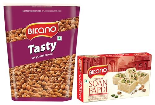 Bikano Tasty Spicy Coated Peanuts 1kgBikano tasty namkeen crispy crunchy fried peanuts dipped in gramflour and spices sprinkled all over it. Bikano a brand to transform the traditional heritage of Indian taste to modernised Indiaâs processed food. A healthy snack which is free from onion and garlic.Bikano Soan Papdi Milk 500 Gm Extra 20% (500g+100g Extra)Crispy and flaky texture sweet which gives milky taste.