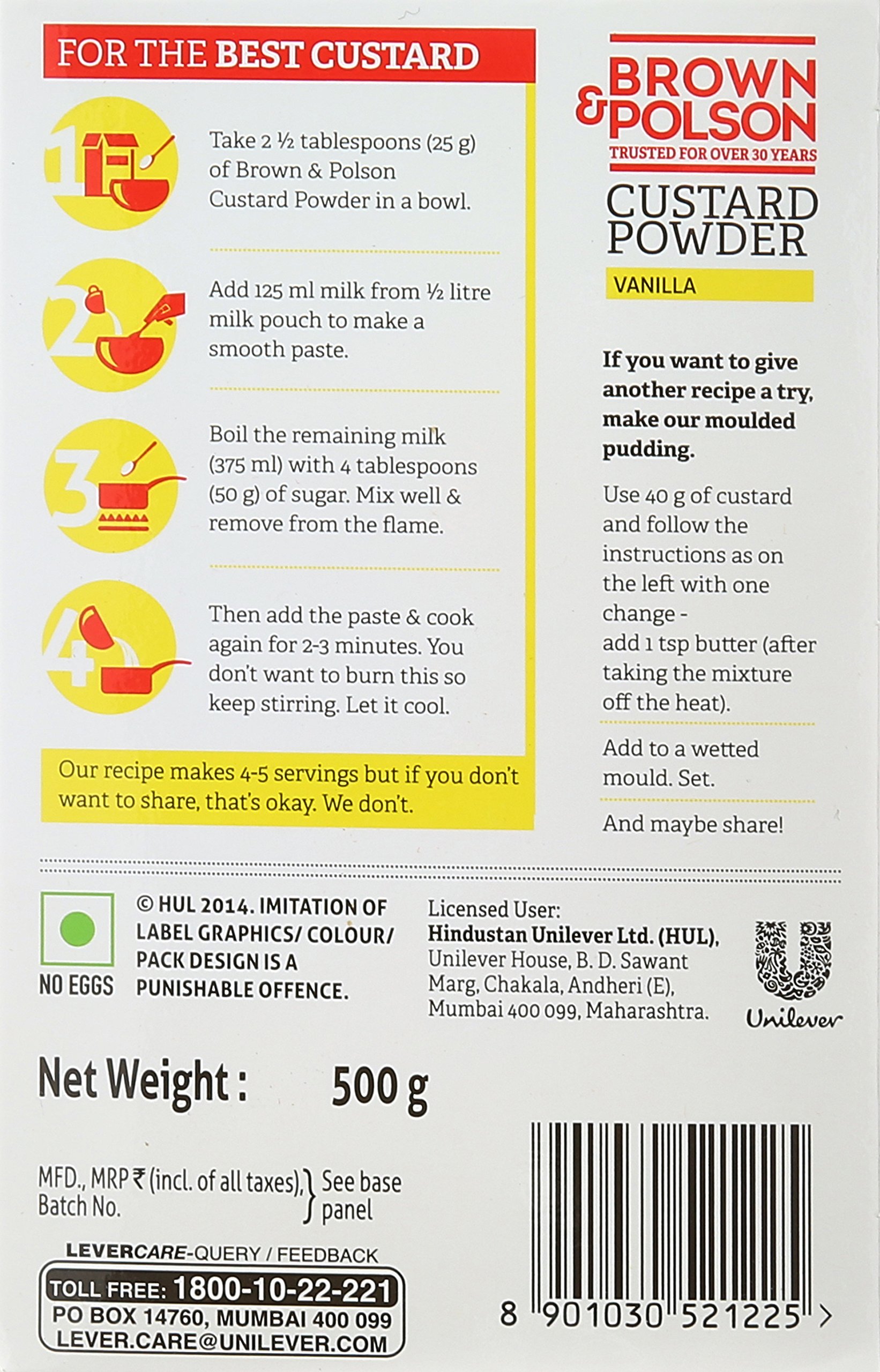 Get used to having mouth-watering desserts at home with Brown & Polson custard powder in a classic vanilla flavor. Simple to make and serve this custard powder can be used to make homemade custard to add in jellies fruit salads and cakes or eaten plain- it always makes a refreshing dessert. Next time you have guests or a sudden craving for dessert remember you have your secret ingredient right here. Buy the Brown & Polson custard powder and get ready to win hearts of all the sweet-lovers around.