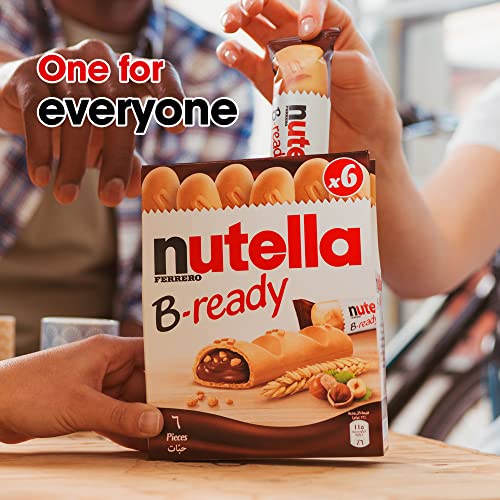 Nutella b-ready wafer filled with Nutella 220g. Pack a crisp wafer of bread in the form of mini - baguette stuffed with a creamy Nutella. creamy spread made with skim milk and hazelnut.
