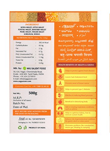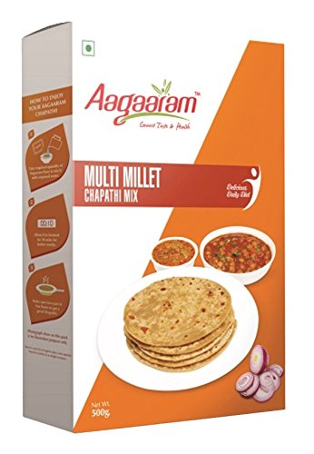 Aagaaram Multi Millet Chapathi mix is a blended combination of wheat with millets like kodo millet little millet foxtail millet pearl and banyard millet. This chapathi mix is an epitome of rich taste and nutrients that gives sufficient nutrients for every day course of action. This chapathi mix is a perfect partner for a healthy living and a better eating. The product is 100% natural and preservative free The product has 0% maida and made entirely from Wheat and Multi Millets.