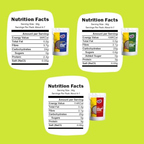 • Easy to Use: Our Millet Rava is easy to cook allowing you to create hearty meals in no time. Simply follow your favorite recipes and enjoy the rich nutty taste of millets in every bite.