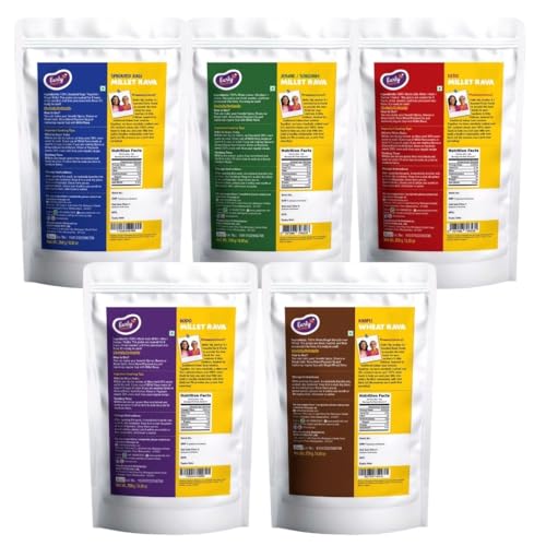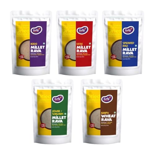 Early Foods : Assorted Pack of 5 - Millet Rava and Khapli Rava 250 gms x 5 | Ready-to-Cook Millet Rava | Instant Millet Suji | Roasted Millet Rava | Millet Idli Rava | Instant Breakfast Mix