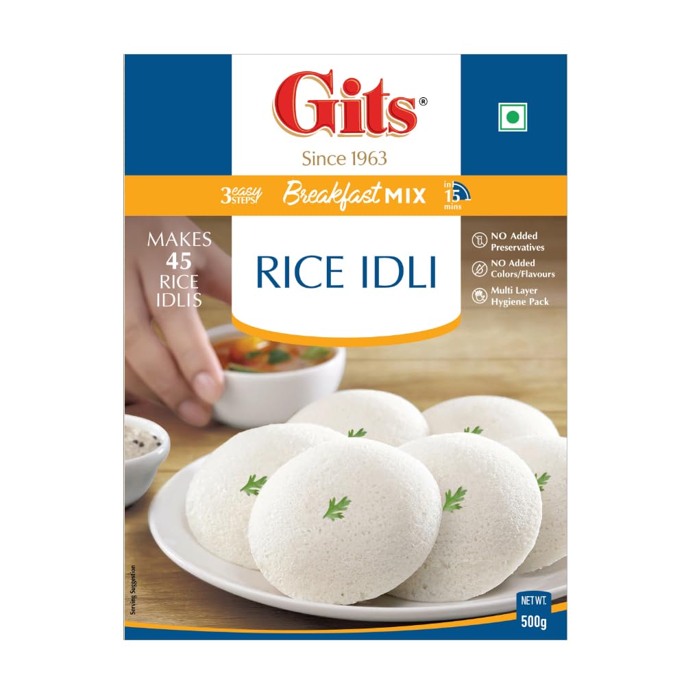Gits Instant Rice Idli Breakfast Mix Makes 45 Per Pack Pure Veg Authentic South Indian Breakfast Recipe 500g