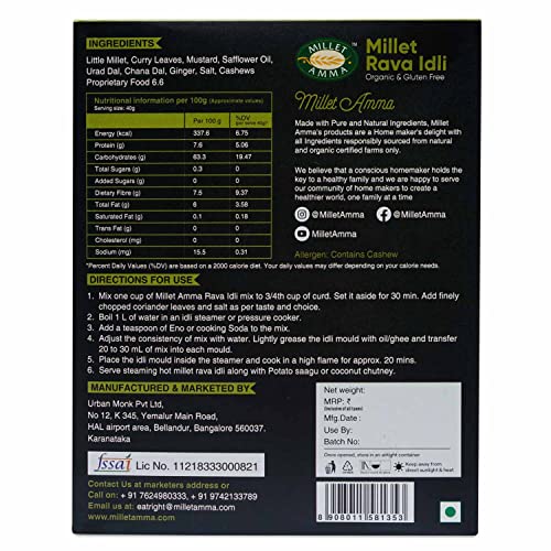 Millet Amma has a vision to offer millet-based products to the world. The idea was conceived in our founder, Ruchika Bhuwalkas kitchen, when she had the arduous task of switching her familys diet to a healthier millet-based one. All natural ingredients sourced from best quality crops. 100% pure and natural without any additives.