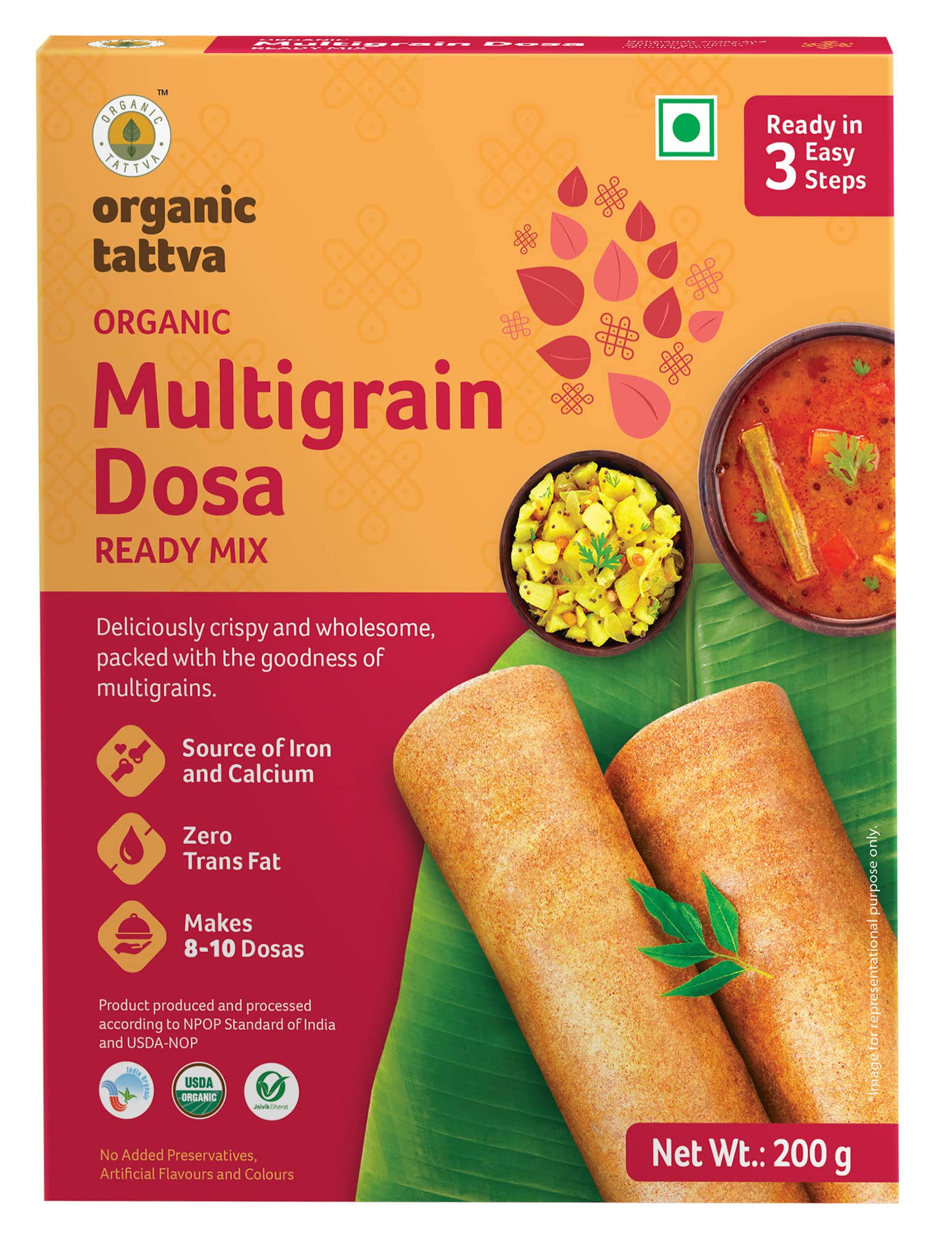Organic Instant Breakfast & Snack Ready Mix Multigrain Dosa 200 Gram Box
