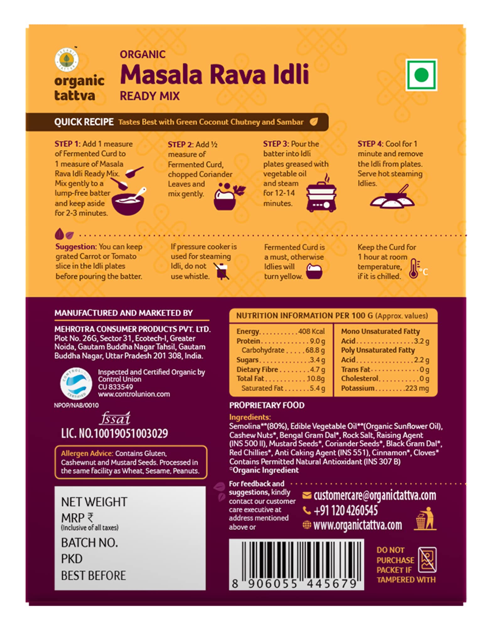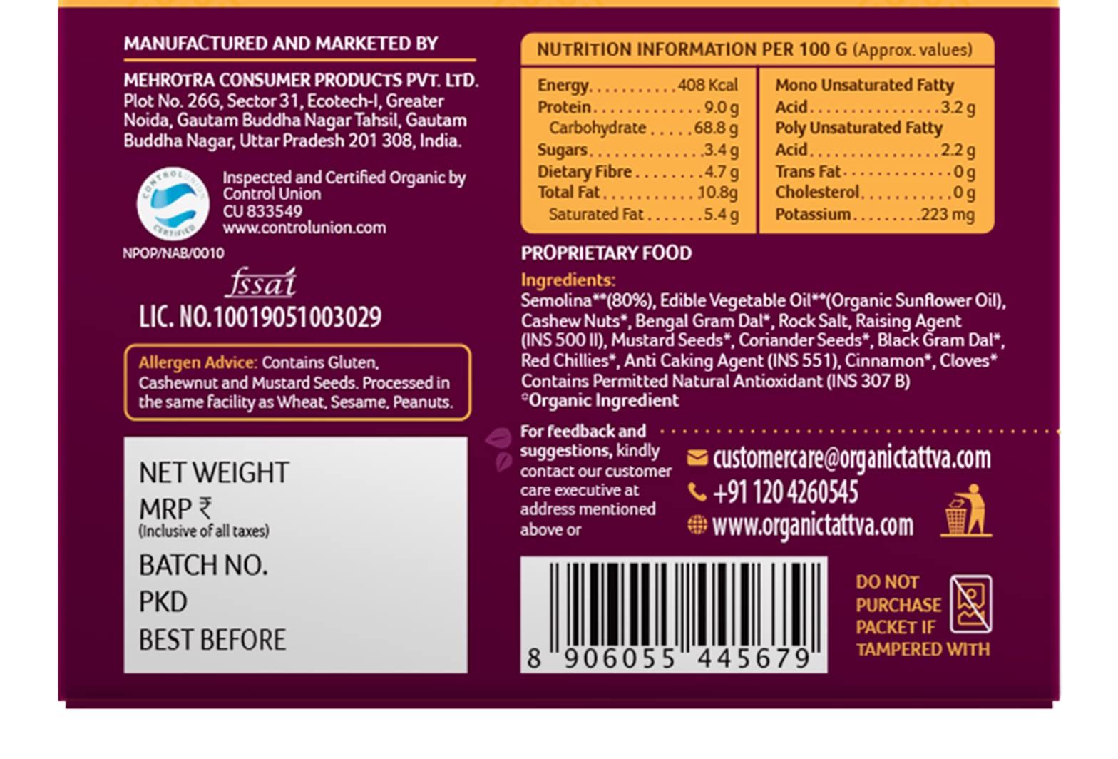 Our Mission: Our brand mission is to help people live a healthier wholesome life by providing them with a variety of 100 percent certified authentic organic foods. We value honesty integrity and continual self-improvement. We are committed to a sustainable environment zero-additive foods and complete customer-satisfaction. Brand philosophy: The brand organic tattva is based on the principles of health ecology fairness and care. At organic tattva the team works with accredited organic farmers who do not use fertilizers pesticides and genetically modified seeds so that their consumers can enjoy the benefits of nature and relish nutritious healthy pure and chemical-free food an important factor contributing to overall wellbeing.