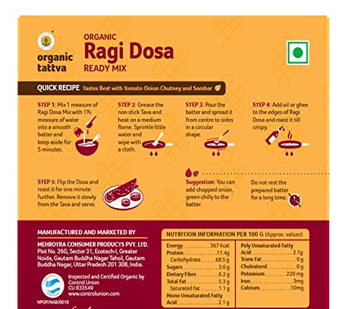 Organic Ragi Dosa Instant Ready Mix 200 Gram (Breakfast / Evening Snack)