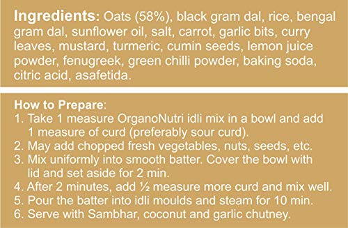Organo Nutri Soft fluffy delicious idli loaded with the goodness of Oats and ready in an instant. Idli is one of the most popular breakfast dishes from south India. But it is not limited to south India; Idli is prepared across entire India even for lunch and dinner. Idli itself gives slightly sour taste but they are served with traditional curry known as Sambhar. Preparing Idli involves preparation of special parboiled Idli rice; and after a long fermentation process the final batter gets ready which is then steamed to prepare round cakes.