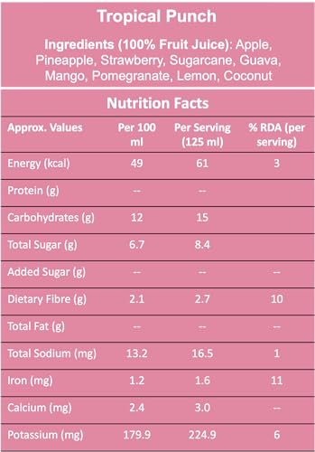 100% Fruit Juice - Tropical Punch - Mixed Fruit Juice With Coconut Bits - No Added Sugar Healthy Beverage - 100% Natural Ingredients - Zero Preservatives - Not From Concentrate - 250 ml - Yu