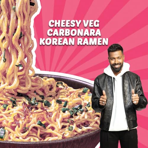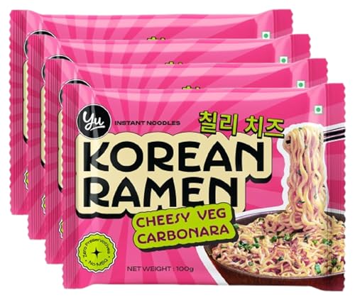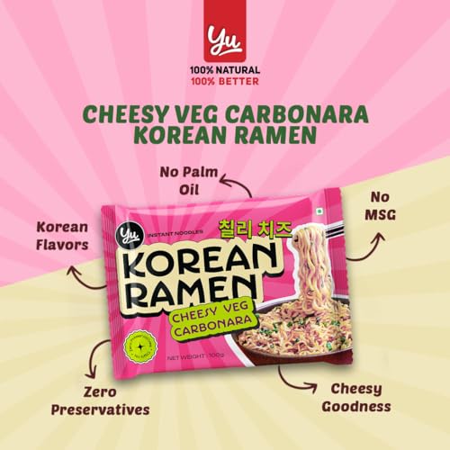 Cheesy Veg Carbonara Korean Ramen - Zero Preservatives & No MSG - 100% Natural Ingredients & Veg - Instant Noodles Ready in 6 Mins - 400g (100g x 4) - Yu