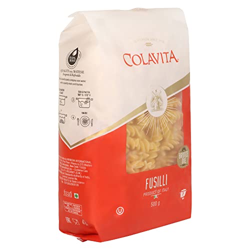 Colavita New Bronze Die Cut Regular Fusilli Pasta is long thick corkscrew shaped pasta-traditionally it is âspunâ by pressing and rolling a small rod over the thin strips of pasta to wind them around it in a corkscrew shape. Excellent and versatile pasta Goes well with red or white sauces also perfect for pasta salads .Cook with 100% Italian authentic Colavita Olive Oil for a perfect Italian meal.