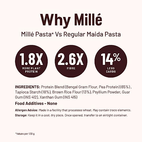 1.8x protein and 2.6x fibre in comparison to other regular maida pasta.