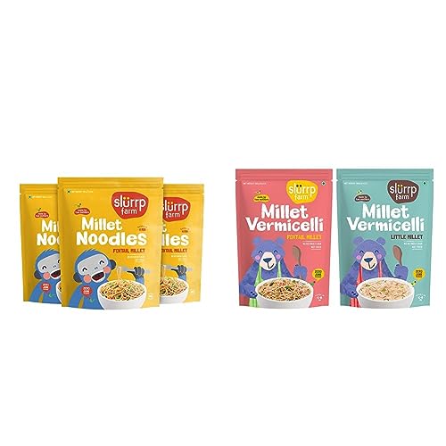 Slurrp Farm No Maida Millet Noodles | Not Fried No MSG | Foxtail Millet Noodles Pack of 3-192g EachNo maida refined sugar and palm oil not friedSlurrp Farm Millet Vermicelli Semiya – No Maida No White Rice Foxtail Millet and Little Millet Vermicelli 180 g each (Pack of 2)No maida no white rice. Zero trans fat saturated fat and cholesterol
