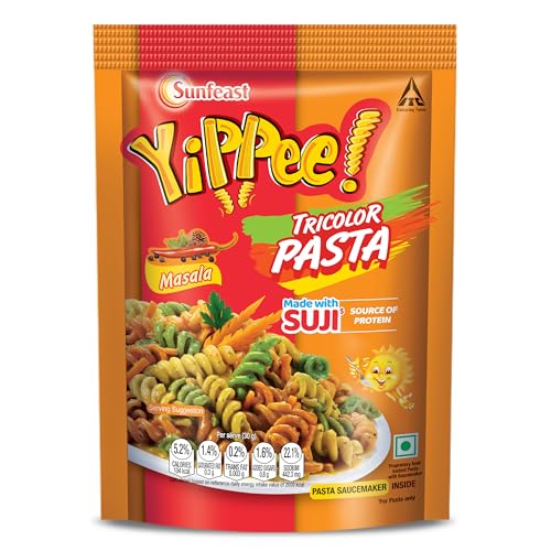 HomeGroceryInstantPasta & NoodlesSunfeast Yippee! Tricolor Pasta|Masala|Soft & Creamy Pasta|Instant Pasta Made with Suji/ Rava (Weight May Vary),65/70 Gms
