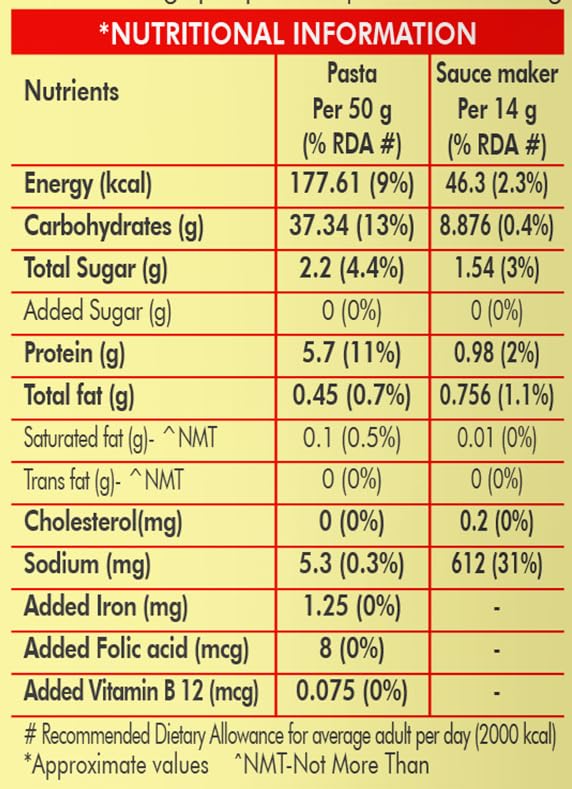 Introducing Weikfield Cheesy Creamy Instant Pasta a delectable and convenient meal option for cheese and pasta enthusiasts. With Weikfield's expertise in delivering high-quality food products this instant pasta recipe brings together the rich flavors of cheese and creaminess in one delightful package. Indulge in the creamy goodness of Weikfield Cheesy Creamy Instant Pasta where each bite is a burst of cheesy delight. With the perfect balance of flavors this instant pasta is carefully crafted to ensure a satisfying and mouthwatering experience. Preparing this cheesy creamy pasta is a breeze. In just a few simple steps you can have a delicious meal on your plate in no time. Whether you're in need of a quick lunch a hassle-free dinner or a comforting snack Weikfield Cheesy Creamy Instant Pasta is the answer. Made with premium quality ingredients Weikfield ensures that each serving of their cheesy creamy instant pasta meets the highest standards of taste and quality. The combination of smooth velvety cheese sauce and perfectly cooked pasta creates a harmonious blend that will keep you coming back for more. With Weikfield Cheesy Creamy Instant Pasta you no longer have to compromise on taste or convenience. It offers the best of both worlds delivering a delectable cheesy pasta experience that can be prepared effortlessly. Whether you're a busy professional a student or simply craving a comforting meal Weikfield Cheesy Creamy Instant Pasta is here to satisfy your cravings and provide you with a delightful dining experience.