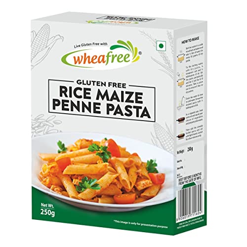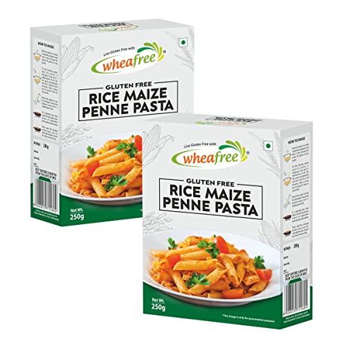 Wheafree Gluten Free Rice Maize Penne Pasta - 2 Packs (250g Each) | No Trans Fat | No Cholesterol | Easy to CookWheafree Gluten Free Rice Maize Penne Pasta - 2 Packs (250g each) With Wheafree Rice Maize Penne Pasta you can cook traditional pasta delicacies at home. Get creative in the kitchen with these easy-to-cook gluten free Rice Maize Penne Pasta. You can pair them well with a variety of sauces and vegetables. It is an ideal meal for those who are celiac gluten intolerant vegan and vegetarian families. Simply cook and savour the delicious goodness of Wheafree Rice Maize Penne Pasta How to make 1. Boil the water in a wide mounted container and take ½ litre of water for every 50 grams of dry pasta. 2. To the boiling water add dry pasta ¼ teaspoon salt and ½ tablespoon of oil. Stir the pasta periodically and let it cook for 8- 10 minutes. Take a piece to ensure it has no dry center. 3. Drain the water & rinse in cold water. Smear the drained pasta with 1/2 teaspoon of oil. 4. In a separate pan heat some oil and sauté your choice of vegetables and prepare pasta sauce. 5. Then add the already boiled pasta and stir with light hands. Cooks it for a few minutes only.Wheafree Gluten Free Elaichi Cookie 400g Pack | Lactose Free | No Maida | Best Tea Time Snacks | 100% Vegetarian and Wholesome IngredientsWheafree Elaichi Cookies are a favourite tea time snack which is baked to crunchy perfection. Our gluten free cookies are crispy in texture and have a delicately balanced flavour. They go perfectly well with your hot tea coffee and you can also snack them while travelling. Now they are lactose free also.