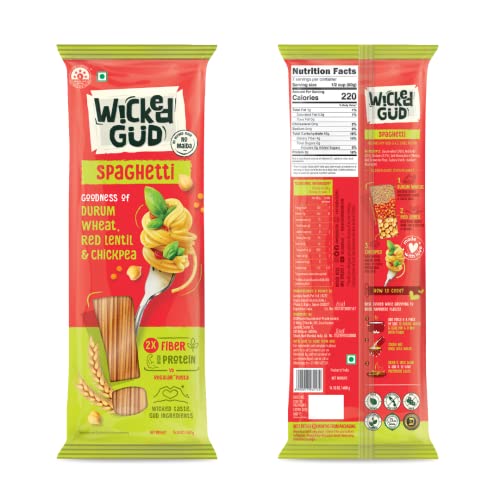 WickedGud 2X Fiber Fusilli & Spaghetti Pasta Combo | No Maida | Durum Wheat Semolina | Brown Rice | Red Lentils | Healthy Diet Pasta - 400gm x 2