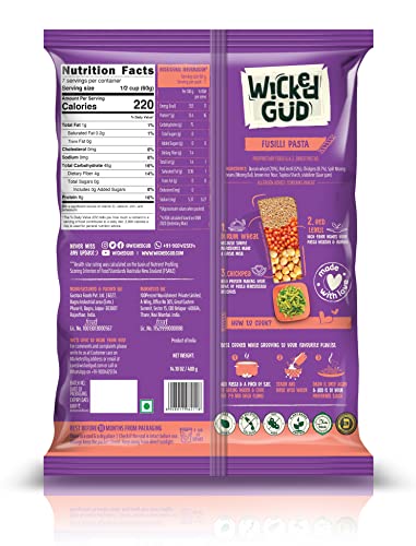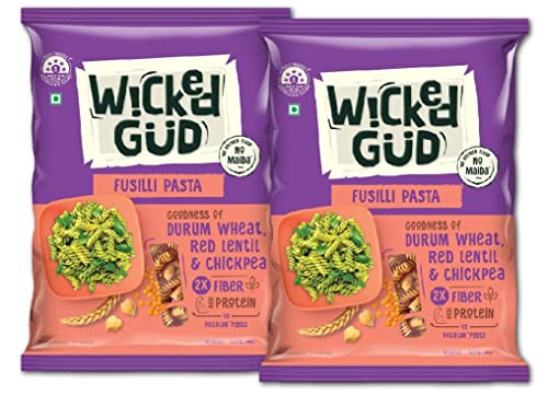 HomeGroceryInstantPasta & NoodlesWickedGud 2X Fiber Fusilli Pasta | No Maida | Durum Wheat Semolina | Brown Rice | Red Lentils | Healthy Diet Pasta - 400gm x 2