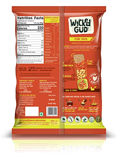 HomeGroceryInstantPasta & NoodlesWickedGud 2X Fiber Penne Pasta | No Maida | Durum Wheat Semolina | Brown Rice | Red Lentils | Healthy Diet Pasta - 400gm x 2