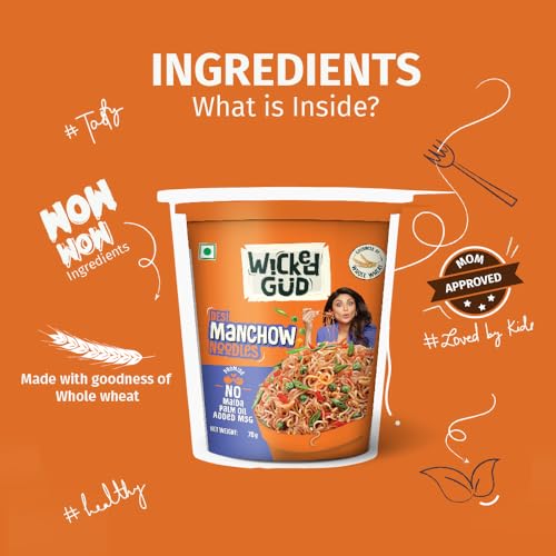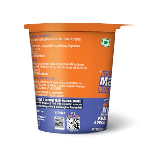 Contains No Maida No Palm Oil No added MSG and No Harmful Chemicals Made with the goodness of whole wheat Ready to eat nourishing masala cup noodles. Ready to eat in 7-8 mins. Fill the cup with hot water up to the inside line. Stir it well and enjoy healthy and nourishing. noodles. Made with a mission to unjunk India one kitchen at a time with the promise of Wicked taste and Gud ingredients
