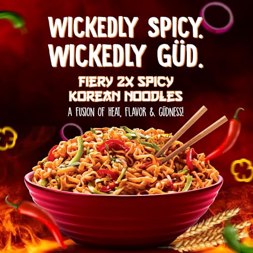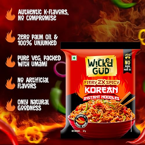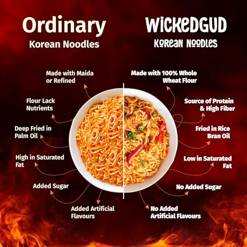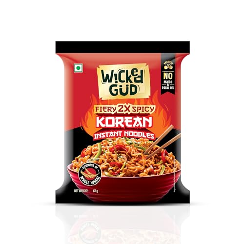 Experience the exhilarating heat of WickedGud's Fiery 2X Spicy Korean Instant Noodles where authentic Asian flavours meet wholesome nutrition. These instant noodles are thoughtfully crafted with whole wheat offering a healthier alternative to traditional instant noodles without compromising on taste. Free from palm oil and maida they deliver a lip-smacking intensely spicy experience that's perfect for those who love their meals with an extra kick. Whether you're racing against time or simply craving a quick satisfying meal these noodles come together in minutes. The perfect solution for busy days and sudden hunger pangs they bring the bold flavours of Korean cuisine right to your kitchen. Each serving promises a guilt-free indulgence that transforms your instant noodle experience into something extraordinary. Ideal for spice enthusiasts who don't want to compromise on their health goals while enjoying their favourite comfort food.