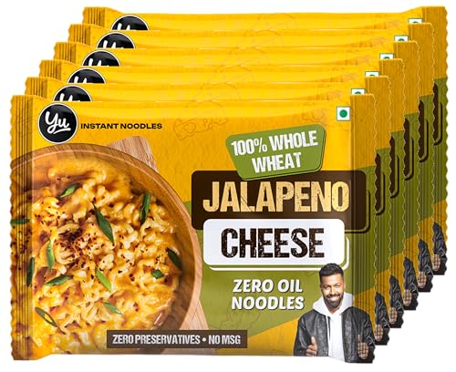 Yu Foodlabs 100% Whole Wheat Jalapeno Cheese Instant Noodles - Pack of 6 - Zero Preservatives Zero Oil Zero Maida & Zero MSG - Atta Noodles Ready in 6 Mins - Veg - 420 gram (70g x 6) - Yu