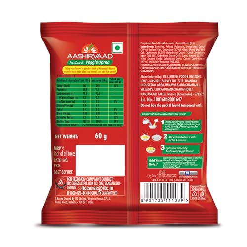 Presenting Aashirvaad Instant Meals which brings you the taste that takes you home. Just add hot water and wait for a few minutes and your favourite breakfast is ready to satisfy your home-food cravings! Conveniently packed in a cup you can now relish the taste of home anytime and anywhere. Nobody knows the efforts that go into making a home meal like Aashirvaad. We have given your mothers nurturance a modern twist and created a range of breakfast and snacking meals that are made with the goodness of grains and vegetables. Instantly made you can enjoy the convenience of having it anytime and anywhere. Just like your mother would put that extra love to her dishes that brought out that delicious taste we put in our love and care to bring to you these instant dishes that taste just like home! - Enjoy the range : Khatta Meetha Poha with Millets Veggie UpmaMini Idli Sambhar and Suji Halwa with Jaggery - Just add hot water! - No Added Preservatives - Comes with a spoon