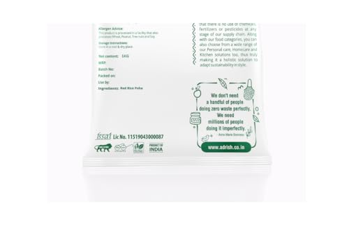 Adrish Zerowaste Organic Red Poha (1kg) - Unpolished Flattened Red Rice | Rich in Dietary Fibers & Nutrients | Unpolished Poha | High in Fibre Poha