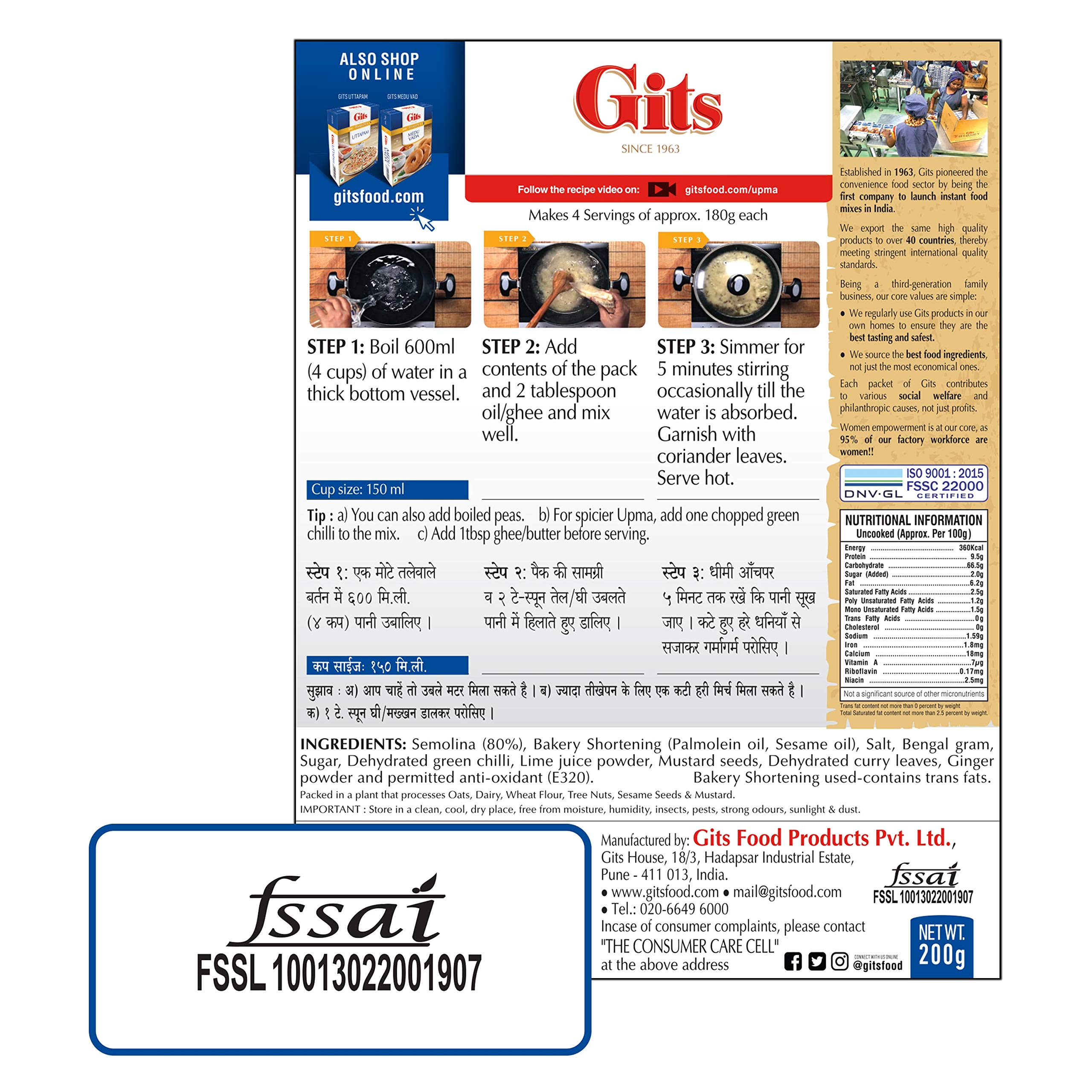 Gits Upma is super simple to make and takes just 5 minutes to get a healthy and tasty meal of hot and nourishing breakfast.