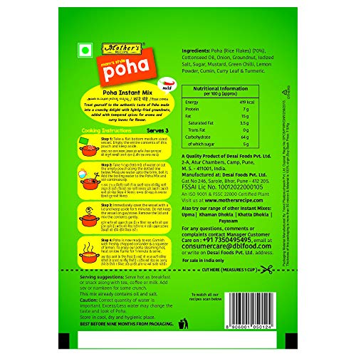 An Indian delicacy poha is an easy to cook nutritious snack made from rice flakes. Prepared only using the freshest ingredients & seasoned for your convenience with mother's magical touch.