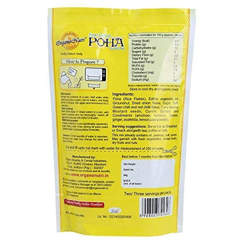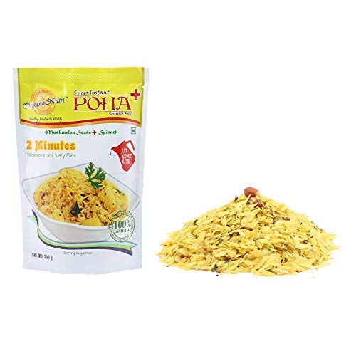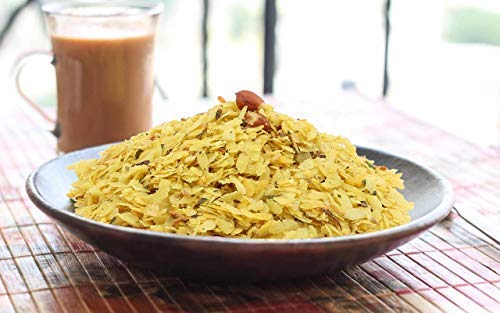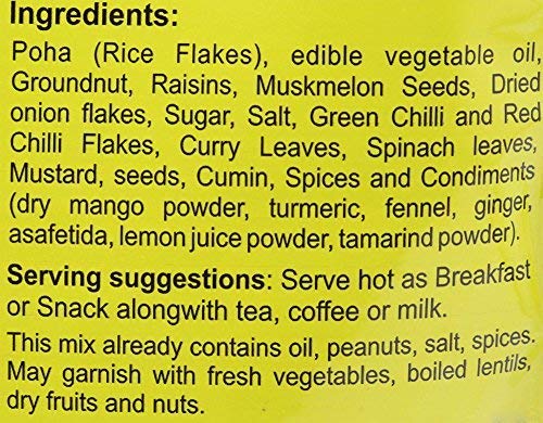 Poha (Rice flakes) Edible vegetable oil Groundnut Onion flakes salt sugar mustard seeds Green Chilli curry leaves lemon juice powder cumin amchoor powder asafoetida powder turmeric ginger powder Fennel powder citric acid.