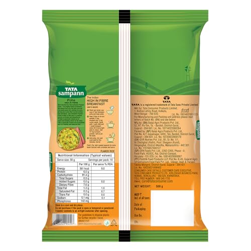 Enjoy mornings full of taste & nutrition with Tata Sampann Popular Poha. Poha is a form of beaten/flattened rice with a dash of peanuts and curry leaves that is widely consumed & enjoyed in North India. It is a rich source of fibre which is known to be an essential part of a healthy & balanced diet. Relish a delicious & nutritious bowl of Tata Sampann Popular Poha as it is also a good source of protein which is known as an important building block for the body. Tata ensures that only the best-sourced rice paddy goes into making the poha giving you a great-tasting and nutritious snack. You can now enjoy the original Indian breakfast whenever you crave the deliciousness in breakfast with evening tea or to satisfy midnight cravings. USAGE INSTRUCTIONS: Wash & strain one cup of Tata Sampann Popular Poha and keep aside. Heat 2 tbsp of oil and splutter ½ tsp mustard and ½ tsp cumin seeds saute with 1 split chilli and 1 small chopped onion till it turns light pink in colour. Add 1/4th tsp turmeric powder salt as per the taste. Add poha mix and cook well for five minutes. Serve! STORAGE INSTRUCTIONS: Transfer contents to an airtight container after opening. Store in a cool and dry place.