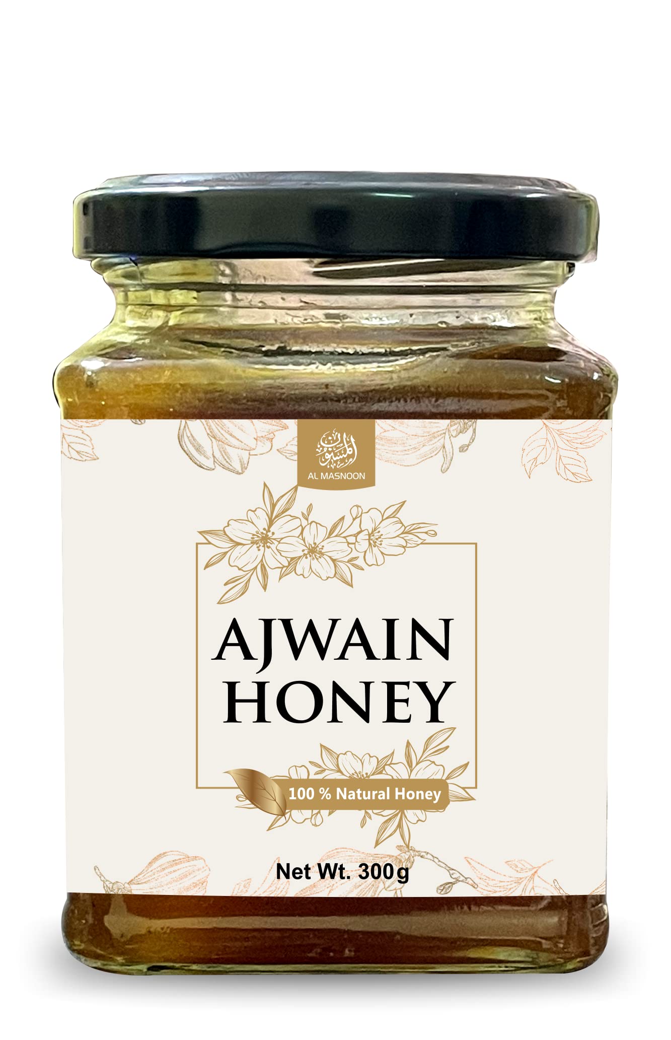 AL MASNOON Ajwain honey is 100% guranteed pure & natural honey . bees collects the ajwain boms in this season. ajwain honey is high in anti& activity therefore it is an instant remedy for stomach .
