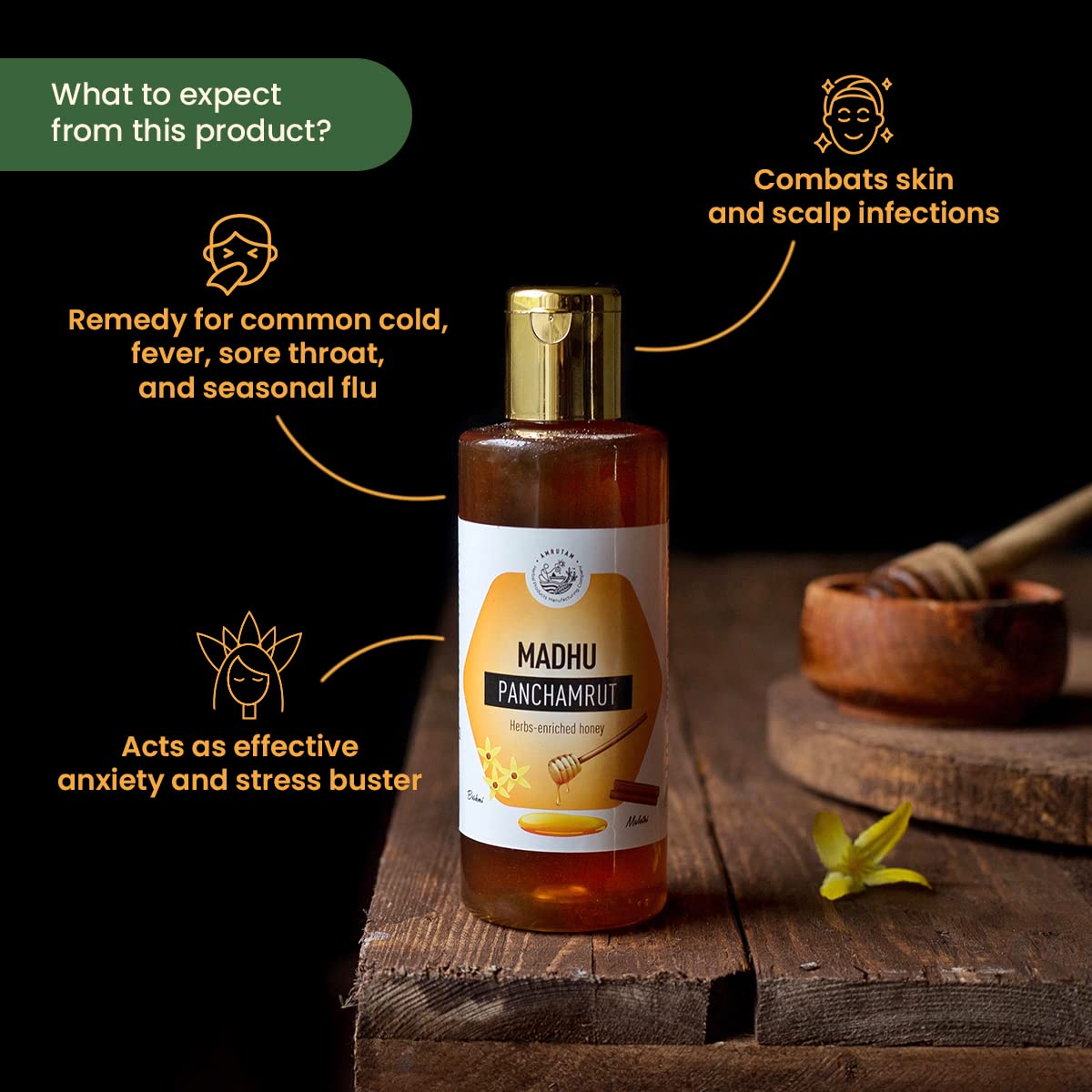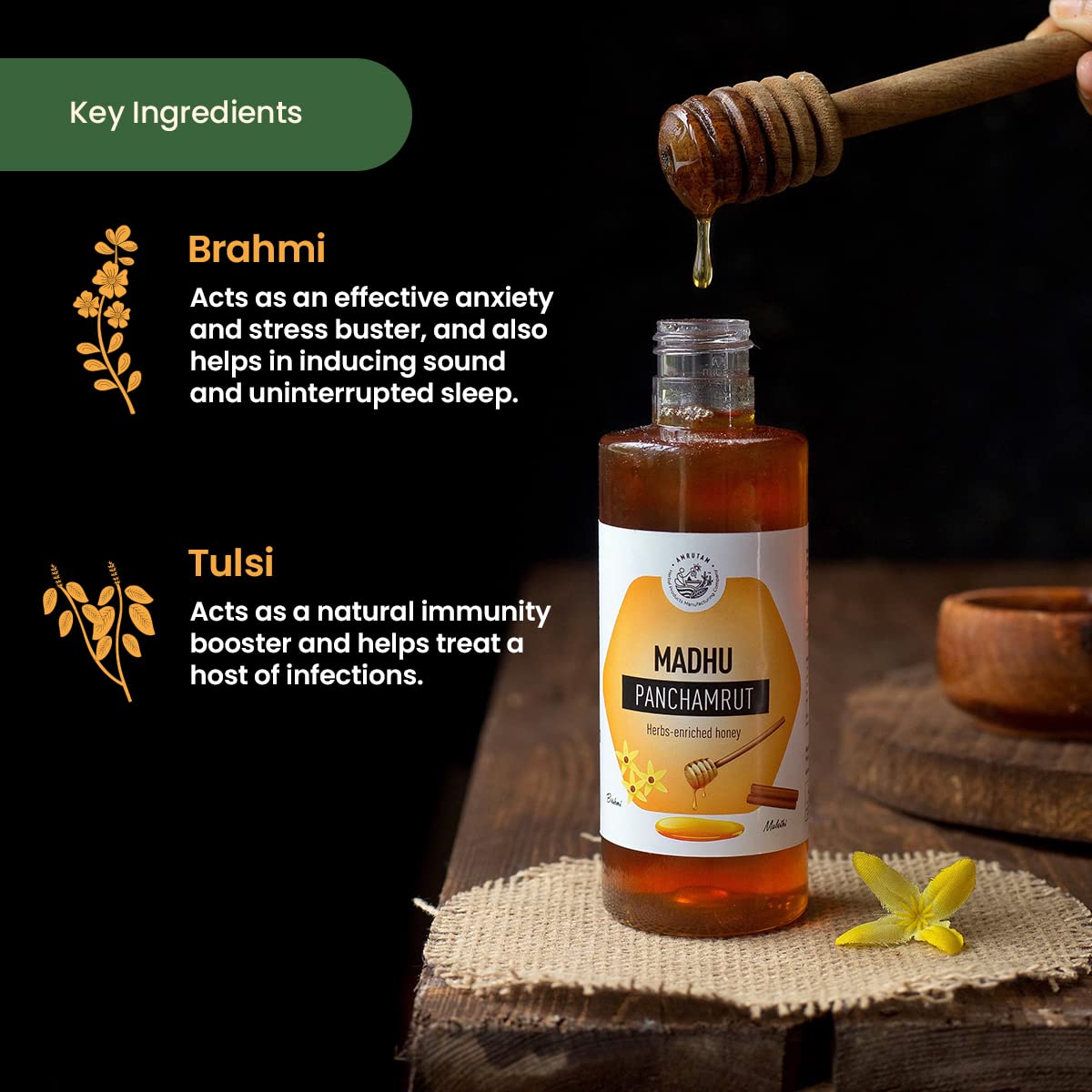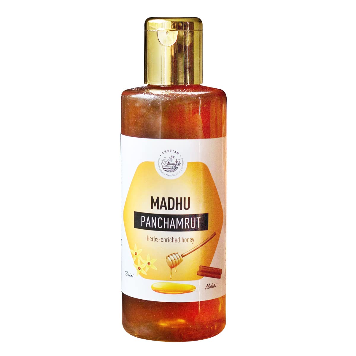 AMRUTAM Madhu Panchamrut Herbs Enriched Honey with Mulethi Tulsi Brahmi and Pan Ka Ras (250gms)