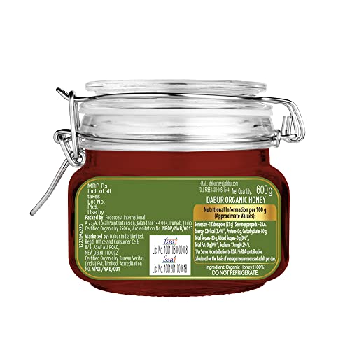 Organic is not just a one-time choice ; It's a way of life. Are you also always in search of organic goodness for your family? Are you looking for 100% Pure and Natural honey straight from the hive? Then here we Present to you Dabur Organic Honey which is NPOP organic certified honey from the house of Dabur Honey World's No 1 Honey brand. This thick delicious honey is sourced from the hives of Apis Dorsata honeybees nestled in deep forests. No chemicals or pesticides are used within a 5 km vicinity of these hives thereby ensuring that honeybees collect nectar only from organically grown wildflowers. It is raw unprocessed and unpasteurized honey which is naturally rich in antioxidants to help boost immunity. It is a good source of nutrition and is considered useful in cough and cold. It offers multiple health benefits like improved stamina better digestion good for heart health & in maintaining a healthy lifestyle. Dabur Organic Honey is 100% compliant with all testing parameters mandated by FSSAI for purity guarantee .Kickstart your day with Dabur Organic Honey and make a healthy choice. Buy now.