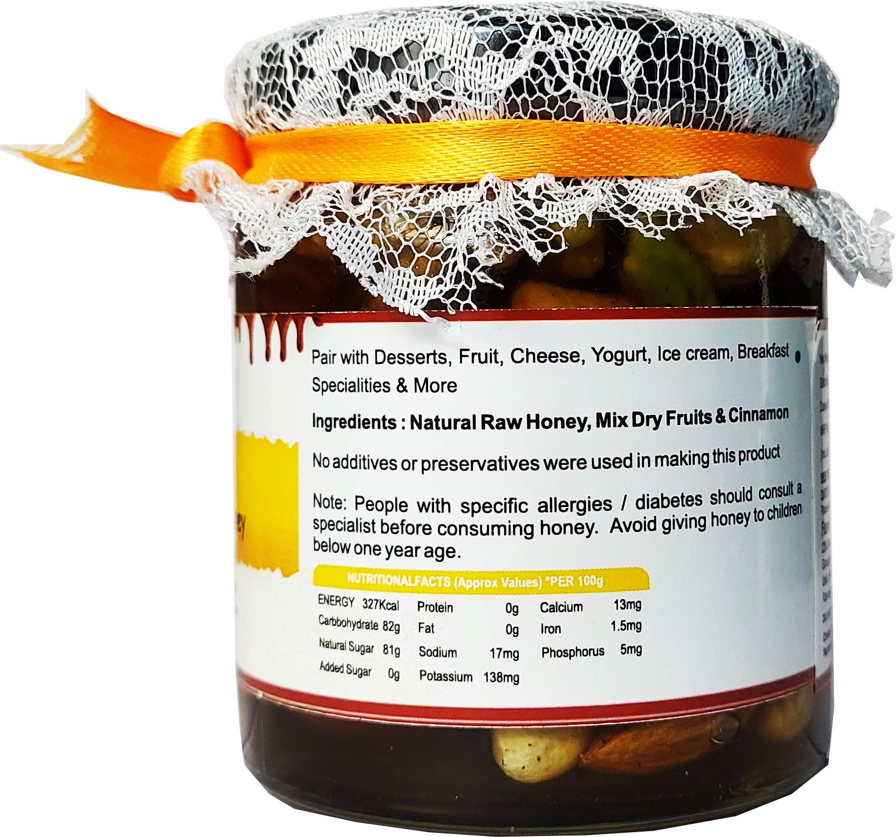 Immunity Product : Daily use of honey and cinnamon strengthens the immune system protects the body from bacterial and viral This is in Glass jars with decoration so this could be offered also as Corporate gift or a gift to any friend or family  100% Pure Raw Natural Bee Honey of Highest quality from the Foot Hills of Himalaya and Pristine Orchards of Uttaranchal. No Pasteurization No High Pressure Filtration No added Sugar Aroma or Preservative Hence our Honey retains the Enzymes Trace Vitamins Minerals Anti-Oxidants Anti-Bacterial Properties and Natural Taste & Aroma