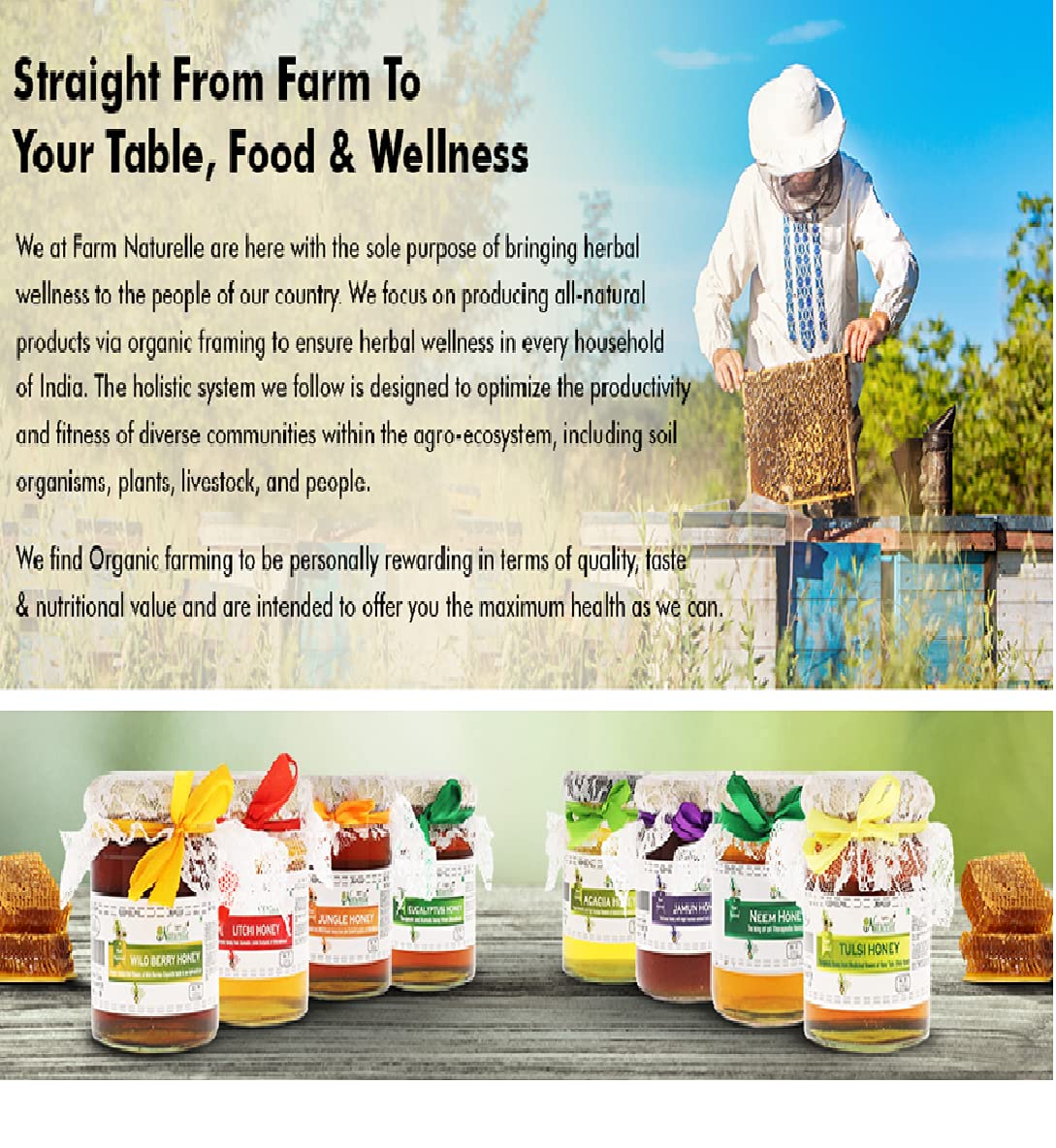 • The Antioxidant Anti-Inflammatory & Antibacterial properties of Farm Naturelle Raw honey help you to build huge immunity fight cold & cough digestion issues and seasonal allergies. Raw honey also helps heal cuts wounds & small burns. Raw Honey helps in ma