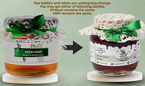 Farm Naturelle Honey - Neem Forest Flower Honey | Raw Natural Ayurved Recommended Unprocessed | Loaded with Naturally Occurring Antioxidants & Minerals, 400g and a wooden Spoon.