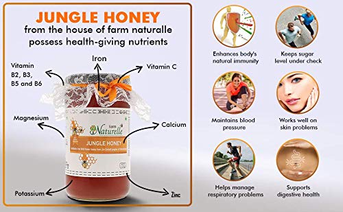 Farm Naturelle-Jungle Flower Wild Forest (Jungle) Honey | 100% Pure Honey | Raw Natural Unprocessed Honey - Un-heated Honey | Lab Tested Honey In Glass Bottle-850g+150g Extra and a Wooden Spoon.